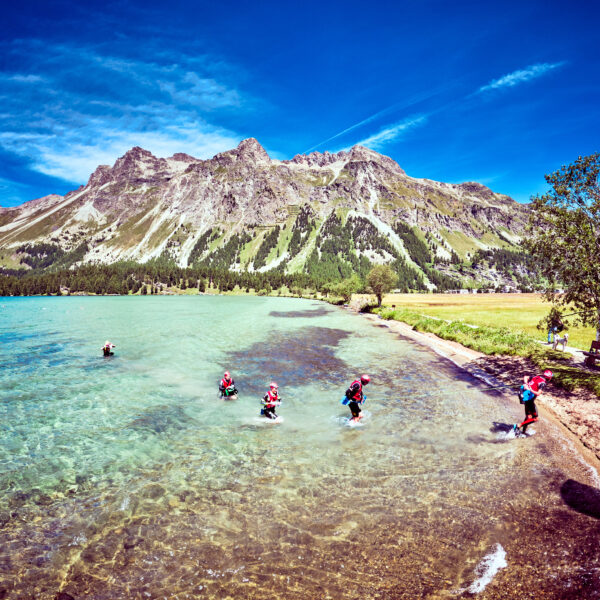 This race, hosted in the fantastic Engadin Valley in Switzerland, was the first ÖTILLÖ race outside Sweden. It launched the international Swimrun movement in 2014. The race venue is located in the wonderful village of Silvaplana, between the well-known St. Moritz and the beautiful mountain villages of Sils and Maloja.